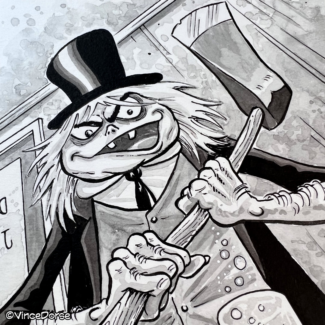 The villainous Mr. Hyde from the Bugs Bunny classic, Hyde and Hare, rendered in ink on 5"x7" watercolor paper, one-of-a-kind, signed.