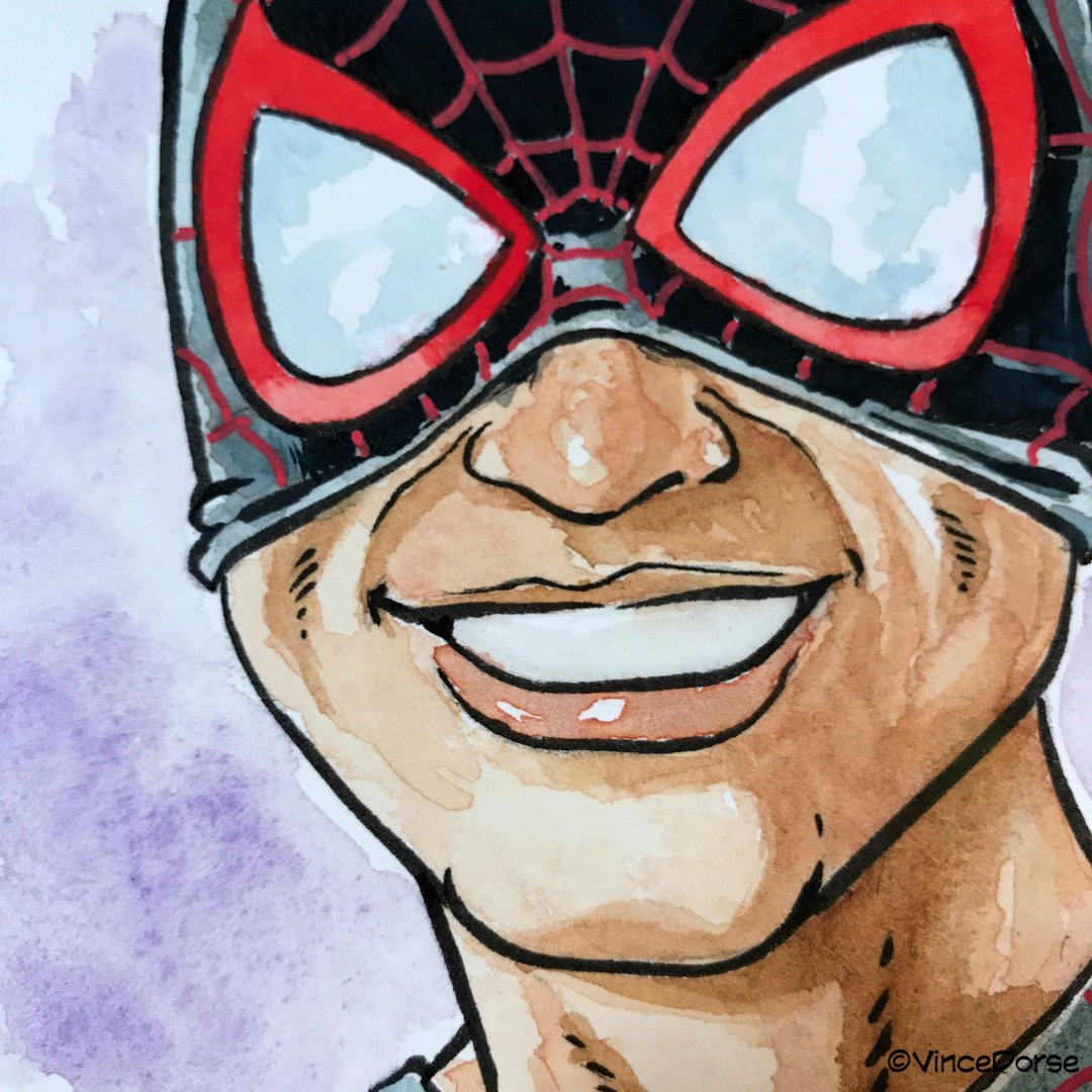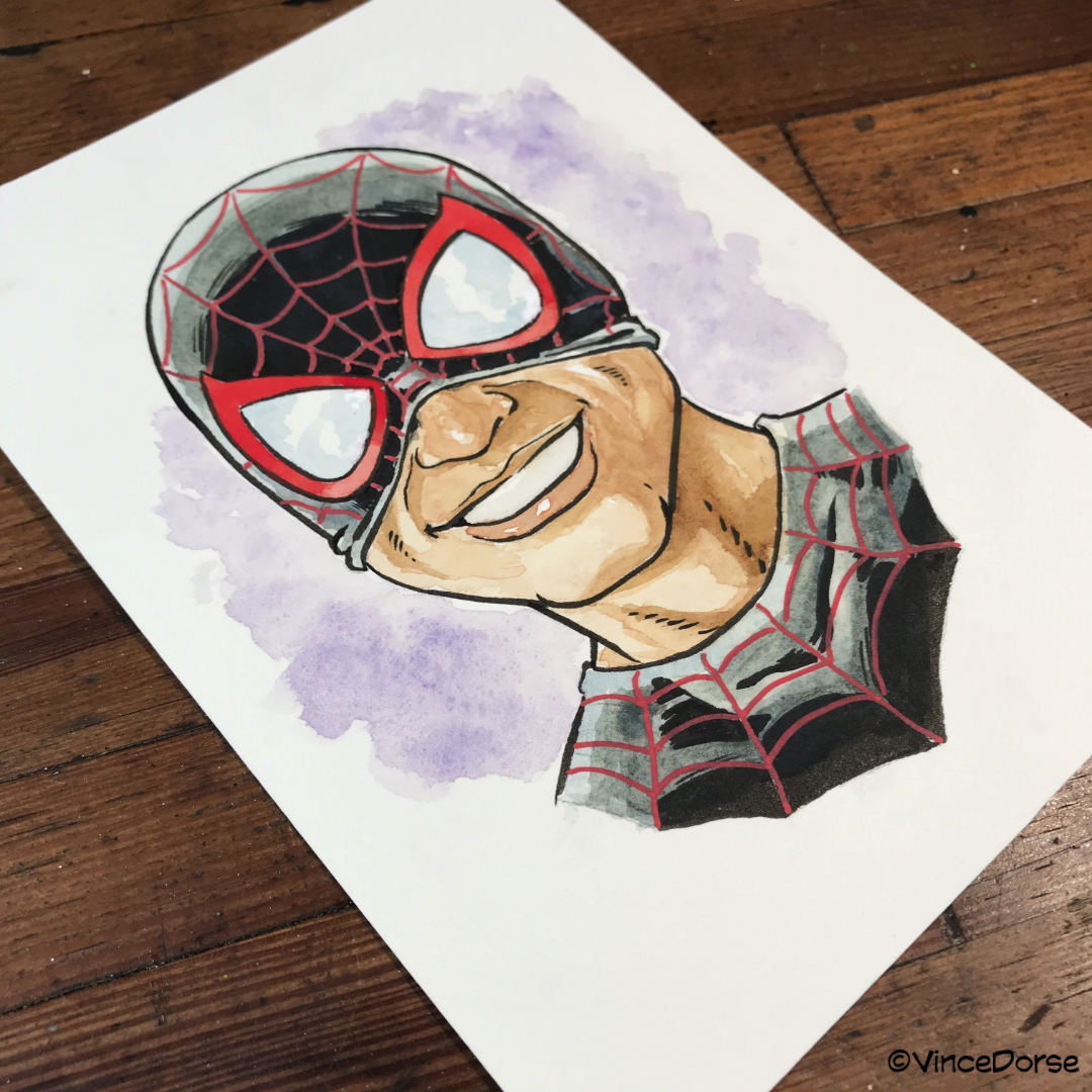 Miles Morales Spider-Man done in ink & watercolor on 5"x7" watercolor paper, one-of-a-kind, signed.