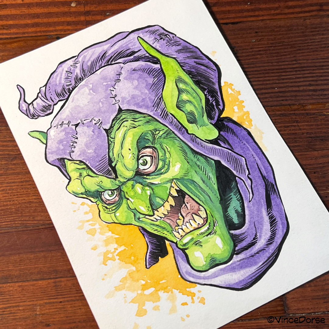 Green Goblin 5x7 Ink & Watercolor