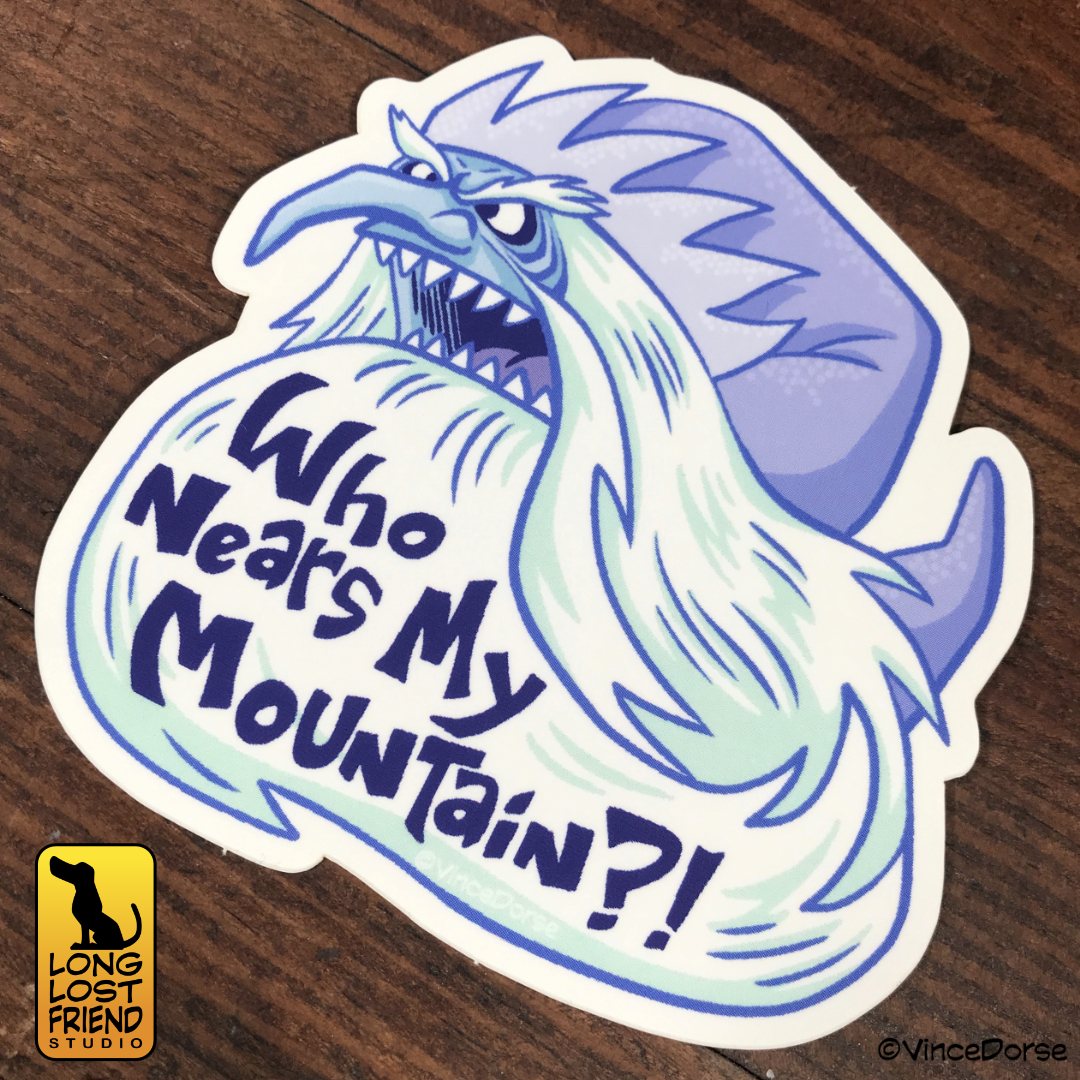 It was in the 1970 Rankin/Bass classic Santa Claus Is Coming To Town that the Winter Warlock first bellowed his ominous question, "WHO NEARS MY MOUNTAIN?!" Who can blame him? He wants to be left alone. He doesn't want anybody messing around on his mountain. If you feel the same way, maybe this sticker will help you inform the interlopers in your life that you wish to be left alone...or else.